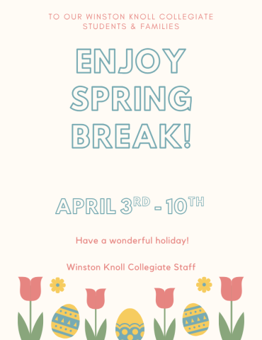 If you require immediate assistance or information during Spring Break, please contact the Winston Knoll School Office at 306-523-3400 or email winstonknollcollegiate@rbe.sk.ca
